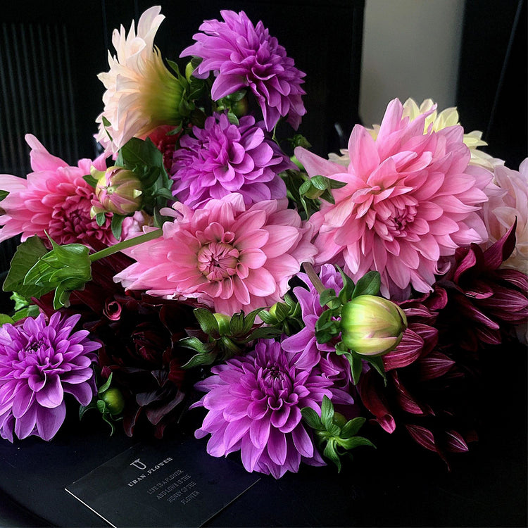 Dahlia is a bright, colorful flower known for its intricate, layered petals that come in a variety of shapes and sizes. Native to Mexico and Central America, dahlias bloom in late summer and fall, adding vibrant beauty to gardens with colors ranging from white and pastel shades to deep reds, purples, and oranges. The flower symbolizes elegance, inner strength, and creativity.