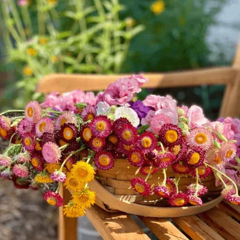 Popular for fresh bouquets and dried floral arrangements, Strawflower is an excellent addition to containers or sunny borders. It establishes readily from Helichrysum seeds, and from late spring to fall, Strawflower produces many double blooms in a broad range of colors. Strawflower thrives in areas with long, hot summers as they are quite drought tolerant. Helichrysum flowers dry easily and retain their color for months or even years so they are called "everlastings." The daisy-like Strawflower, with its papery blooms, originated in Australia, where several of its relatives grow in the wild. Other names for Strawflower are Everlasting Daisy and Helichrysum Paper Daisy.
